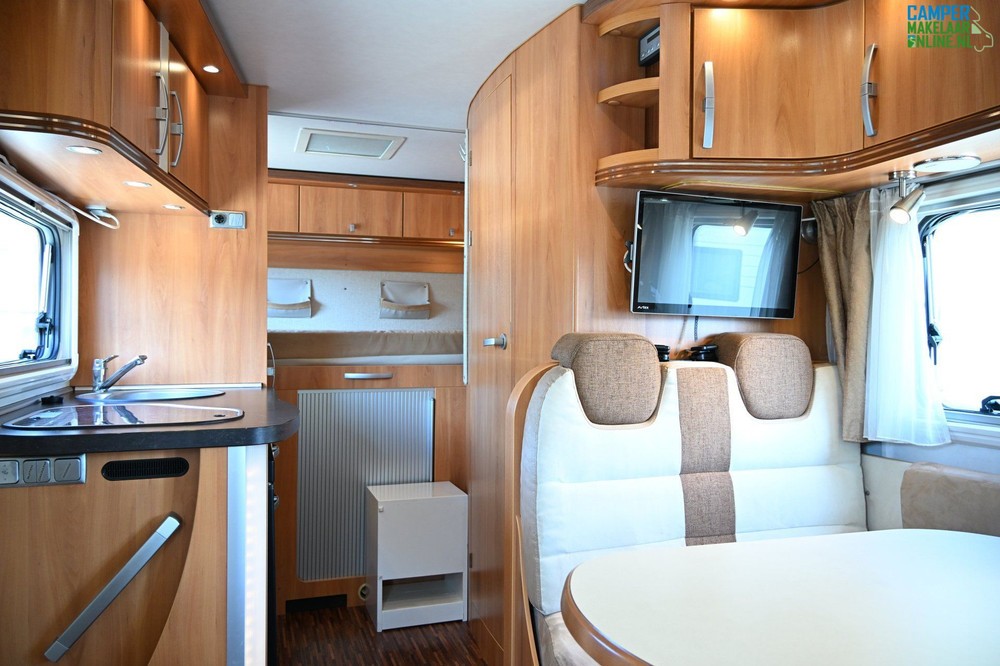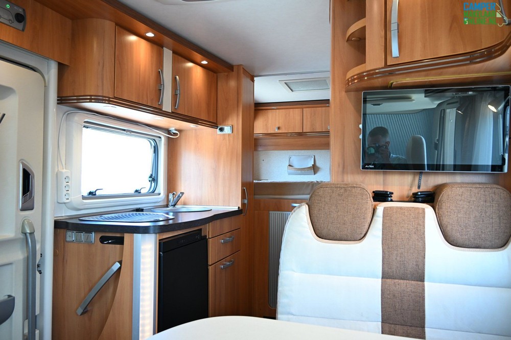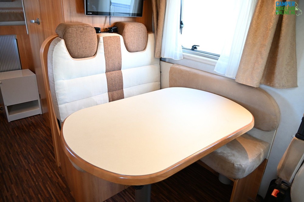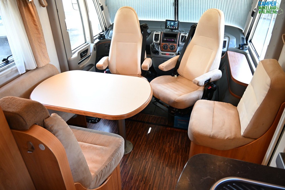 De camper staat op een Fiat Ducato onderstel en wordt aangedreven door een 130 PK sterke dieselmotor met een handmatige versnellingsbak. Voorin de camper bevindt zich de zitgroep met een L-zit, een lengtebankje en de 2 draaibare pilotenstoelen. Boven deze zitgroep is een tweepersoons hefbed aanwezig. Aan de kant van de deur is midden in de camper de keuken gesitueerd met daartegenover de toiletruimte met douchecabine. Achterin de camper is een dwarsbed terug te vinden geschikt voor twee personen.