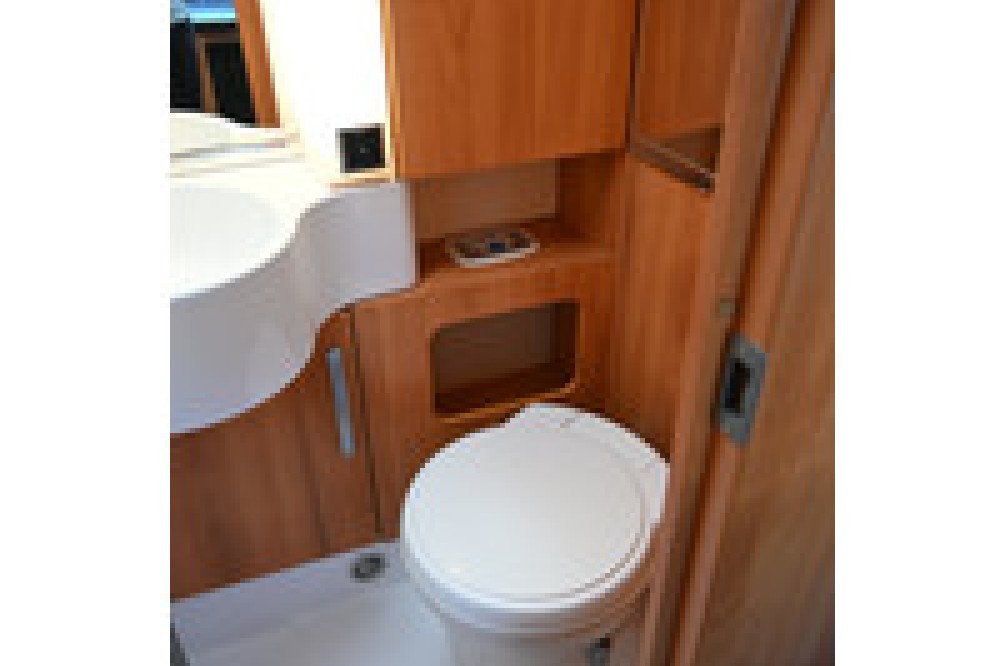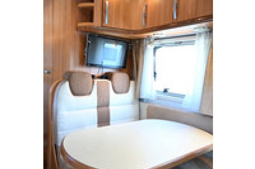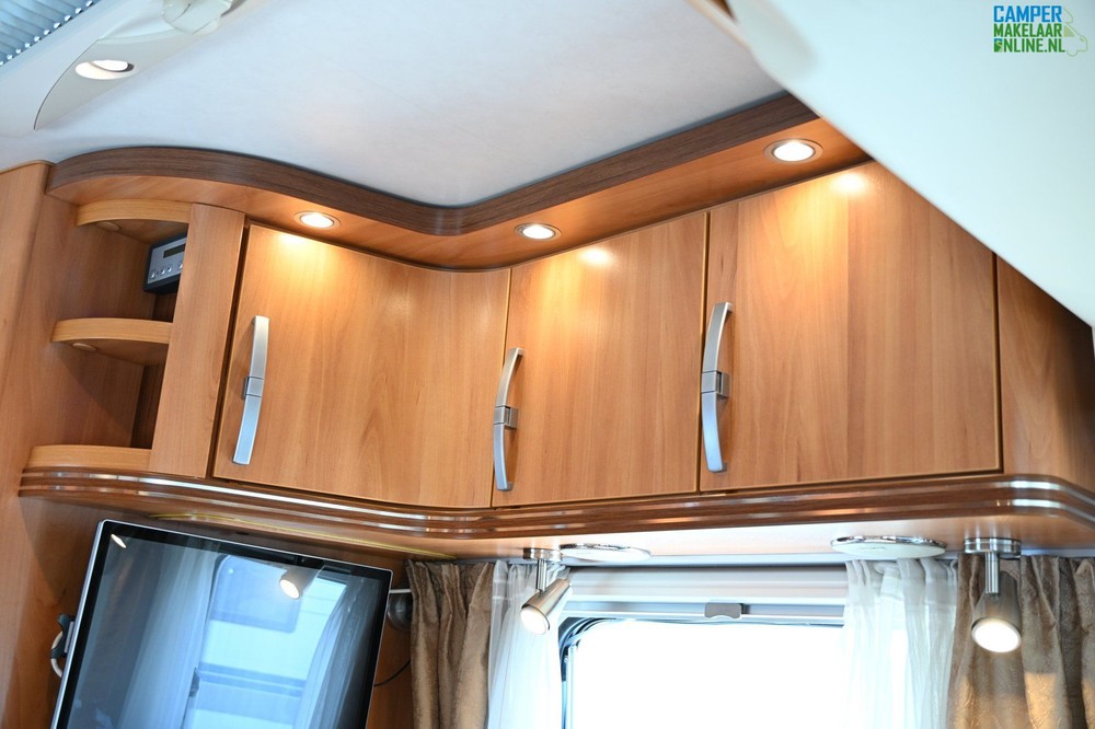Verder is er natuurlijk een cassetteluifel aanwezig welke aan de zijwand is gemonteerd. Ook is er een vol automatische Oyster schotel op het dak aanwezig zodat ook TV kijken onderweg tot de mogelijkheden behoort.