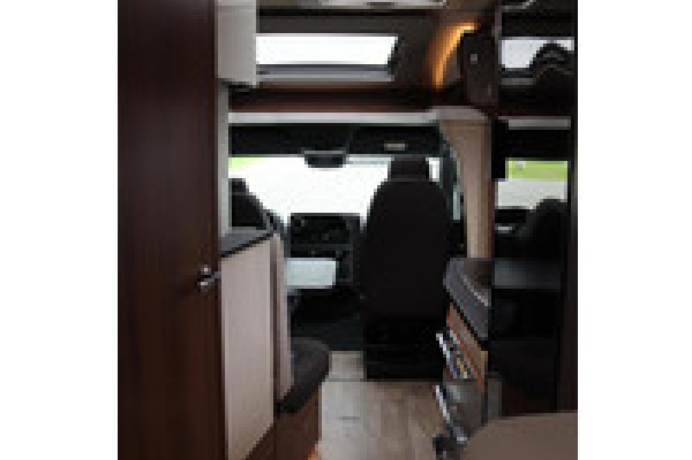 In de cabine van de Hymer BMC-T 580 geniet je van een panoramisch uitzicht, zodat je niet alleen de omgeving optimaal kunt bewonderen, maar ook tijdens het rijden goed overzicht hebt op het verkeer. Het Mercedes-Benz MBUX multimedia systeem zorgt voor een soepele navigatie- en entertainmentervaring, terwijl de luxe pilotenstoelen, die verstelbaar en draaibaar zijn, het comfort verhogen.