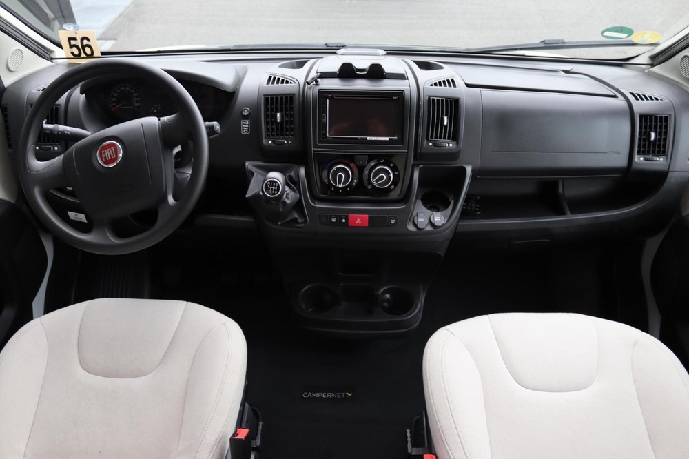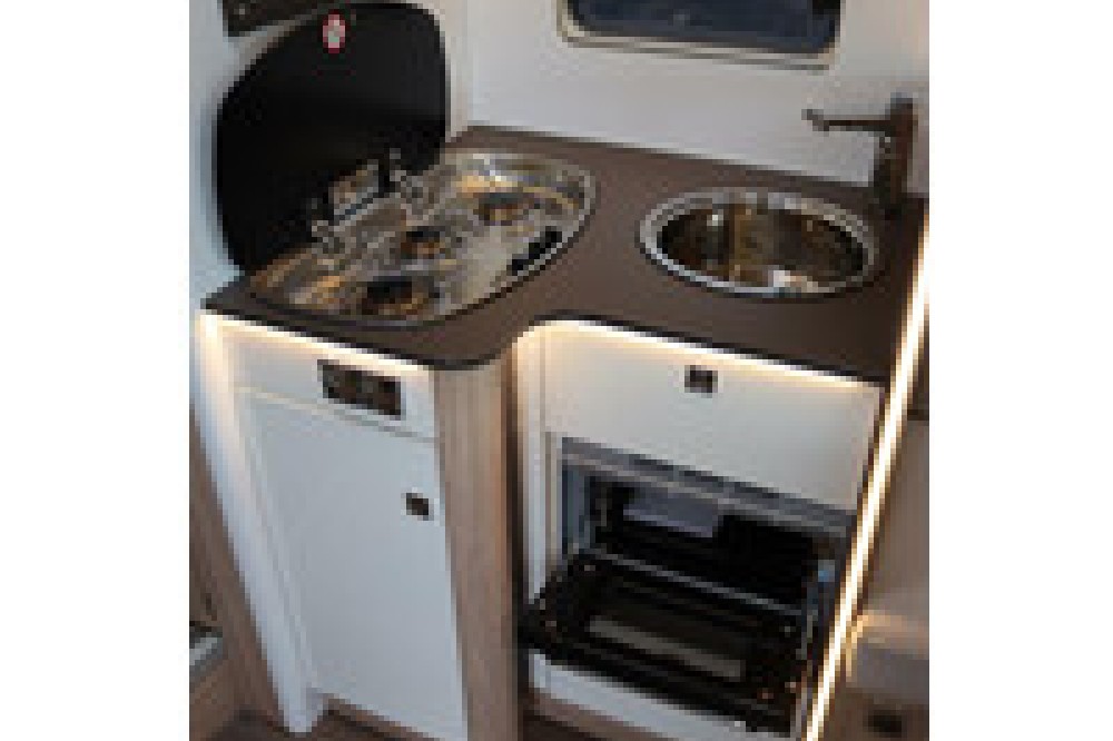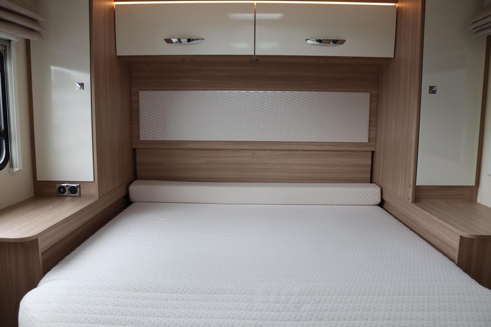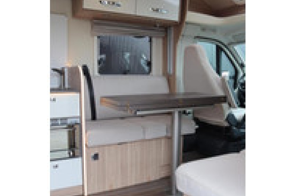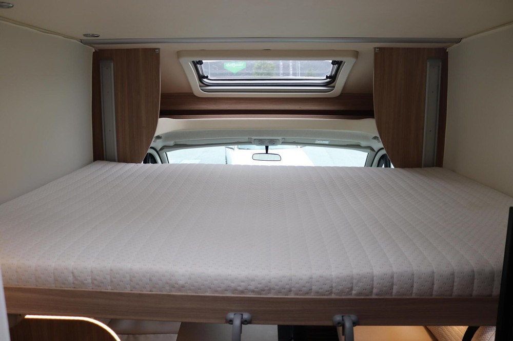 Deze ruime en comfortabele camper is voorzien van een face-to-face zitgroep, een queensbed achterin en een elektrisch hefbed voor extra slaapplaatsen.