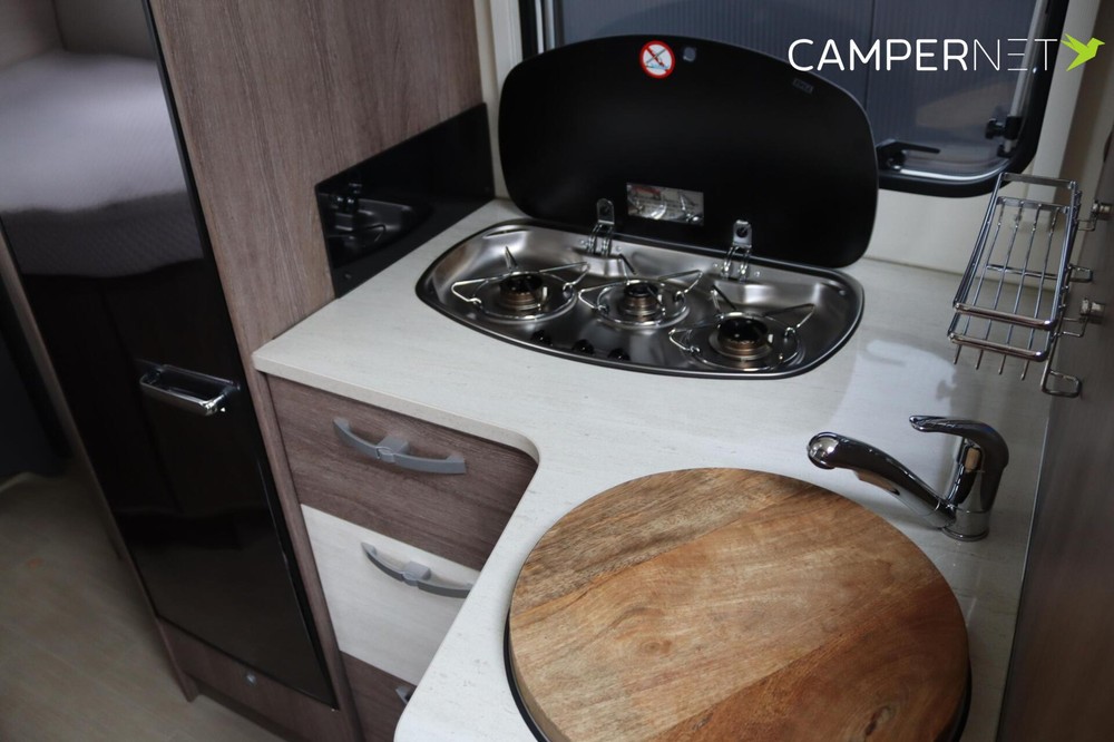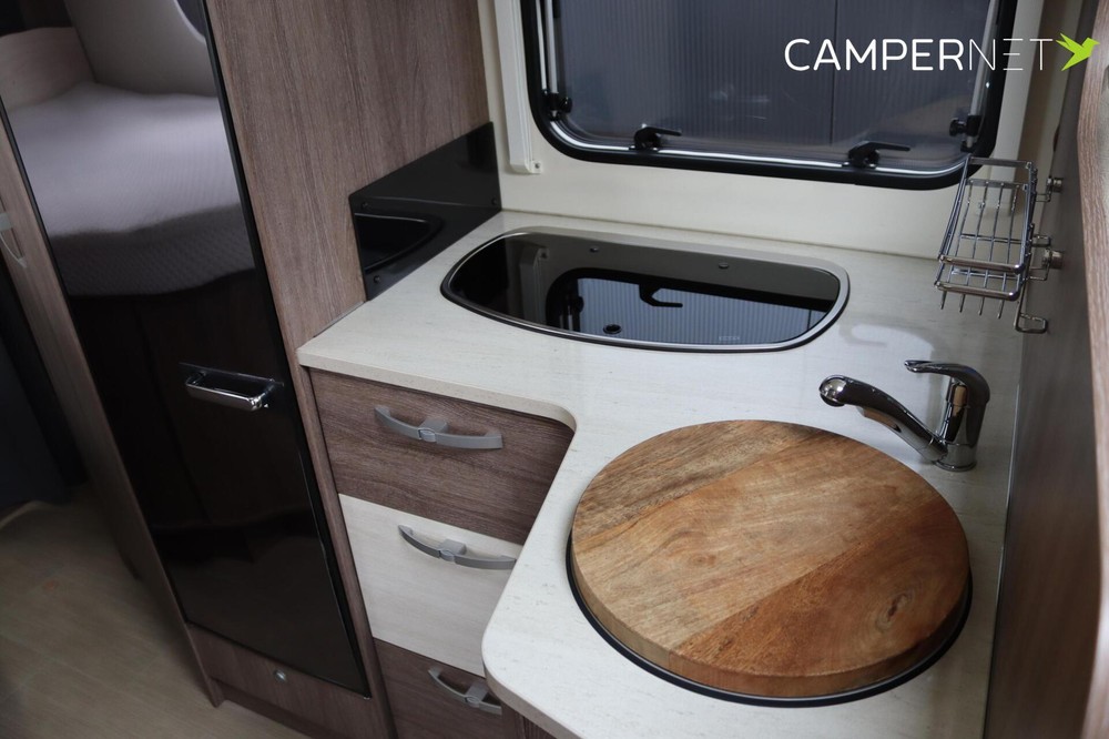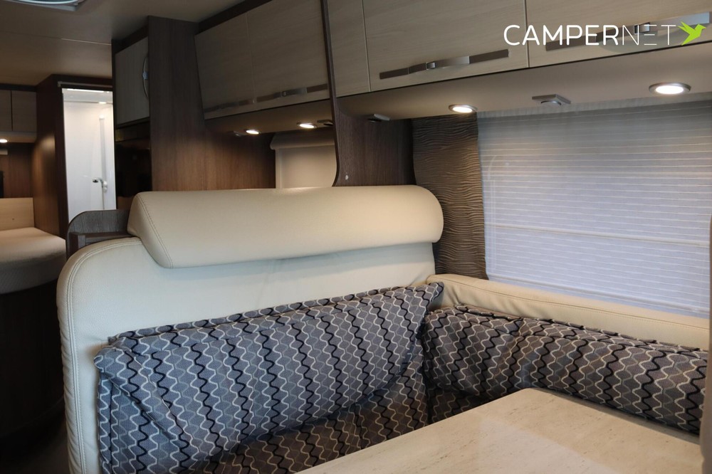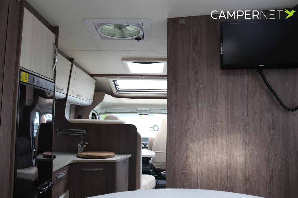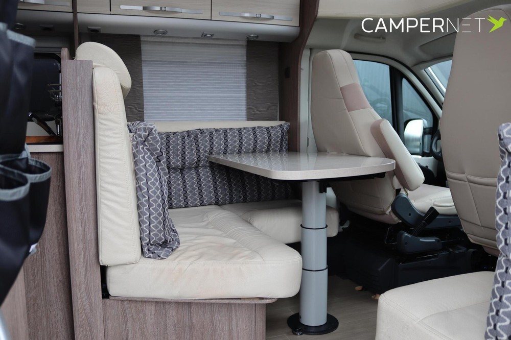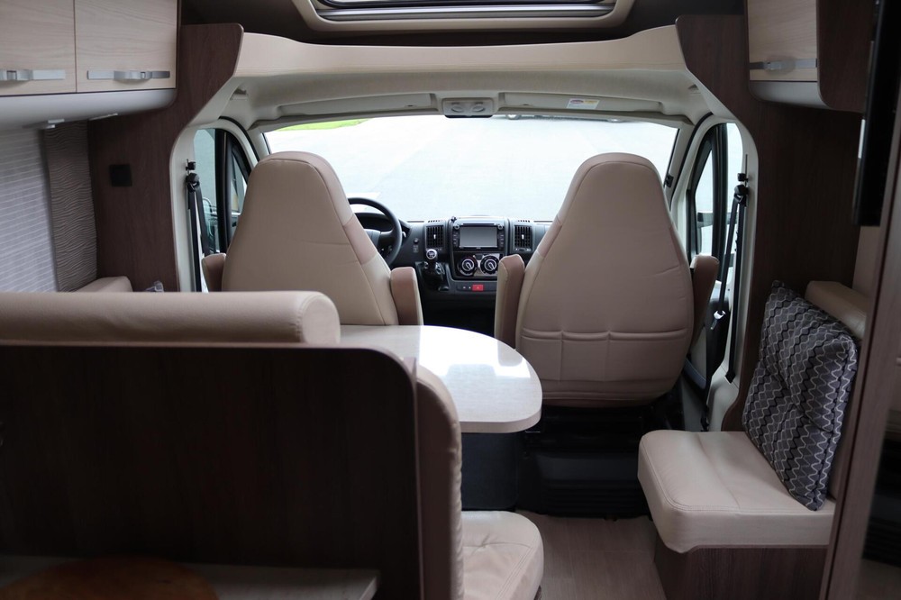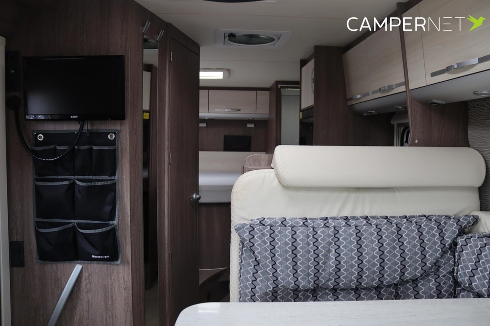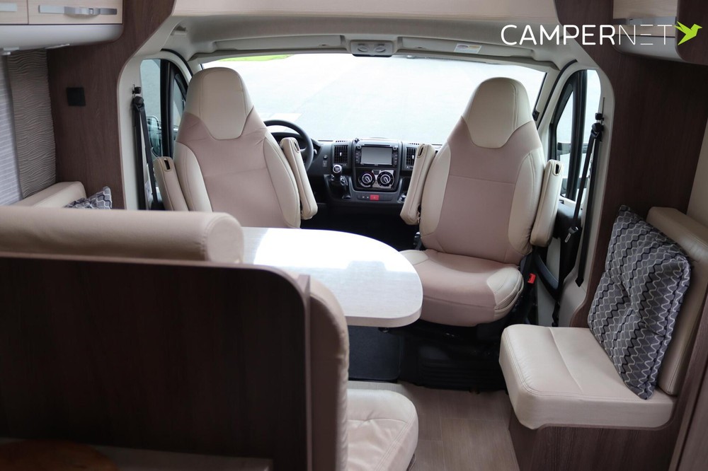 De T685 staat bekend om zijn ruime woonruimte en het populaire queensbed achterin, dat van beide kanten goed bereikbaar is. Voorin is de zithoek comfortabel en voorzien van draaibare pilootstoelen, waardoor er een gezellige eethoek ontstaat. De douche en het toilet zijn van elkaar gescheiden, wat je zelden ziet in deze lengteklasse.