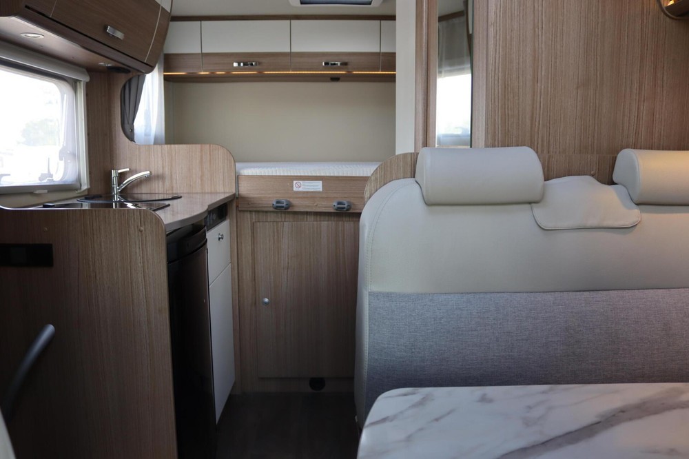 Carado T132 - Compacte half integraal onder de 6 meter.Deze complete, compacte half integraal is de perfecte indeling voor zowel korte trips als lange reizen. Met zijn 5.99 meter is hij uniek in zijn soort. Wendbaar maar toch ruim van binnen.