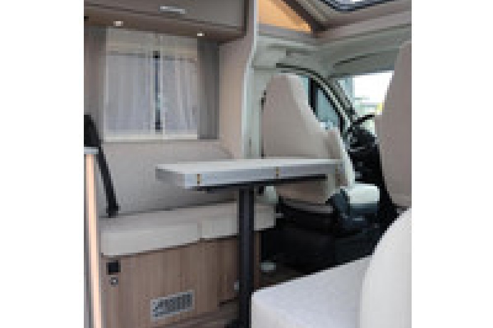 Couch/Couch zitgroep in de camper biedt een veelzijdige ruimte om te ontspannen en gezellig samen te zijn tijdens de reis. Dankzij het slimme ontwerp kan de bank snel en eenvoudig worden omgebouwd tot een aangename slaapplaats, voor extra comfort voor de reizigers.