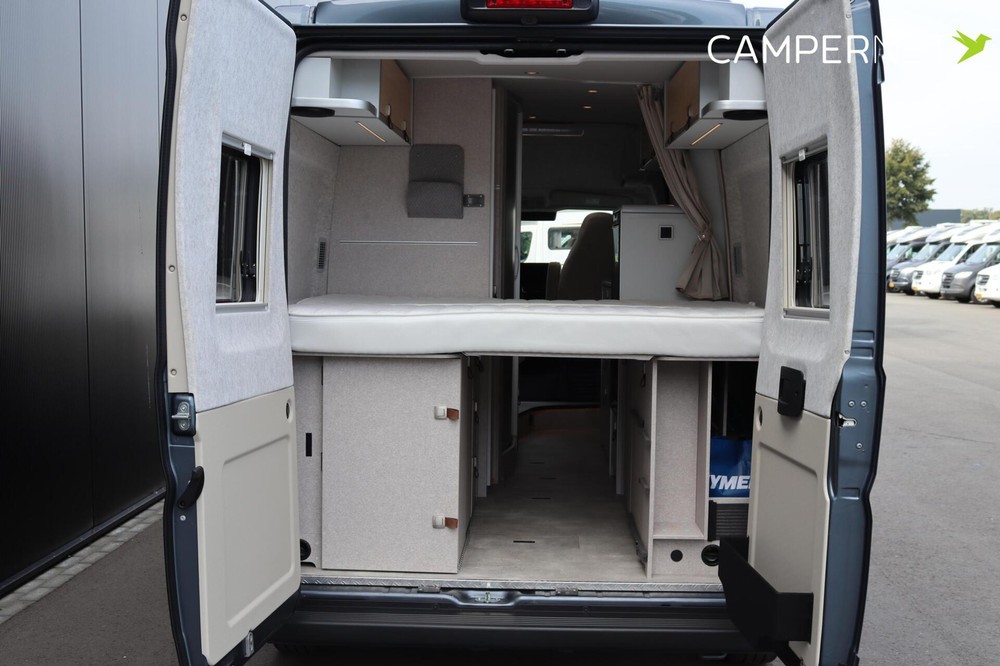 Door de watertank onder de vloer te plaatsen, werd binnen veel meer opbergruimte en flexibiliteit gecreëerd. Dat biedt nieuwe mogelijkheden voor de plaatsing van een grote kledingkast achterin en om grote voorwerpen, zoals de ladder naar het slaapdak, kampeerstoelen of boordwerktuig op te bergen. Bovendien kan dankzij de standaard sjorogen de gang in het midden nog steeds gebruikt worden om sportmateriaal of omvangrijke voorwerpen te transporteren.
