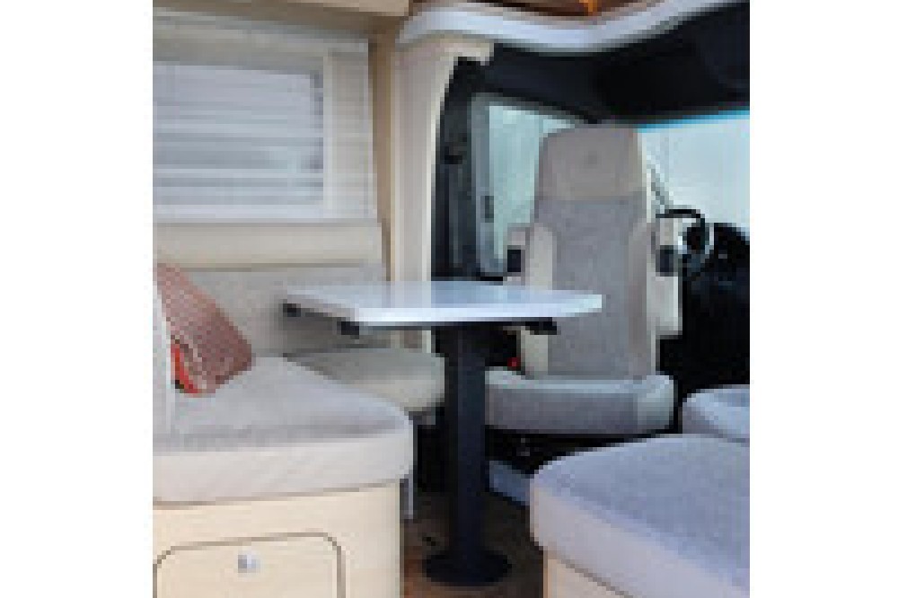 Luxe en praktische detailsDe Hymer BMC-T 600 biedt een ruime zithoek met een L-zit die ontstaat door de draaibare voorstoelen. Het elegante Grand Oak meubeldecor in combinatie met de luxe Creola bekleding zorgt voor een verfijnde uitstraling. Dankzij de dubbele bodem, die verwarmd is en extra opbergruimte biedt, kun je jouw spullen veilig en droog opbergen. De 180 liter schoonwatertank en de 150 liter vuilwatertank zijn weggewerkt in de dubbele bodem, terwijl je vanuit de buitenkant eenvoudig toegang hebt tot de opslagruimte. De ruime garage heeft een laadhoogte van 132 cm, is aan beide zijden toegankelijk en biedt voldoende ruimte voor uw fietsen, scooter en bagage.