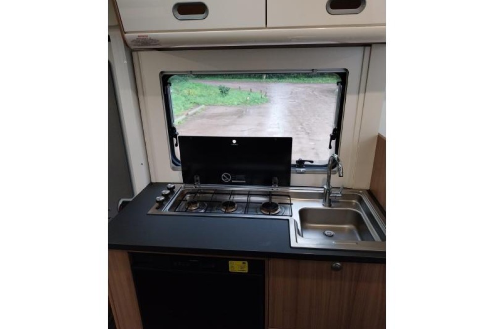 Centraal in de camper bevindt zich de middenkeuken, uitgerust met een spoelbak, kraan en 3-pits kooktoestel. Voor een snelle toevoer van warm water is er een boiler aanwezig. De koelkast met vriesvak biedt voldoende ruimte voor heel uw voorraad.