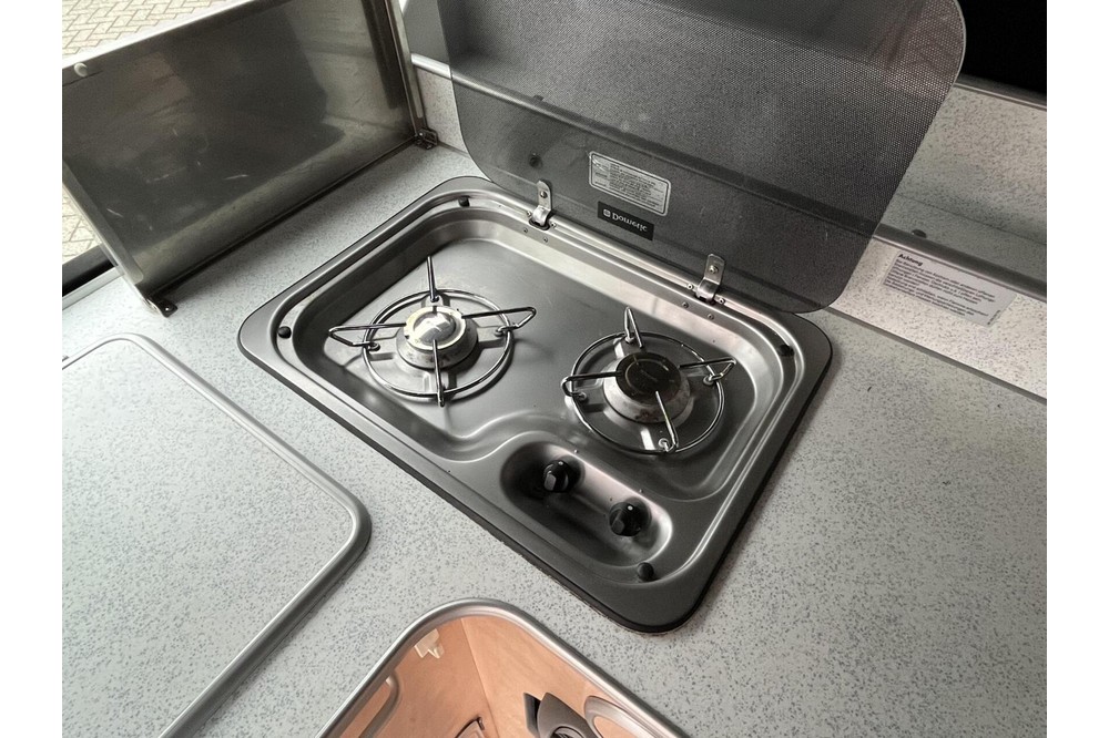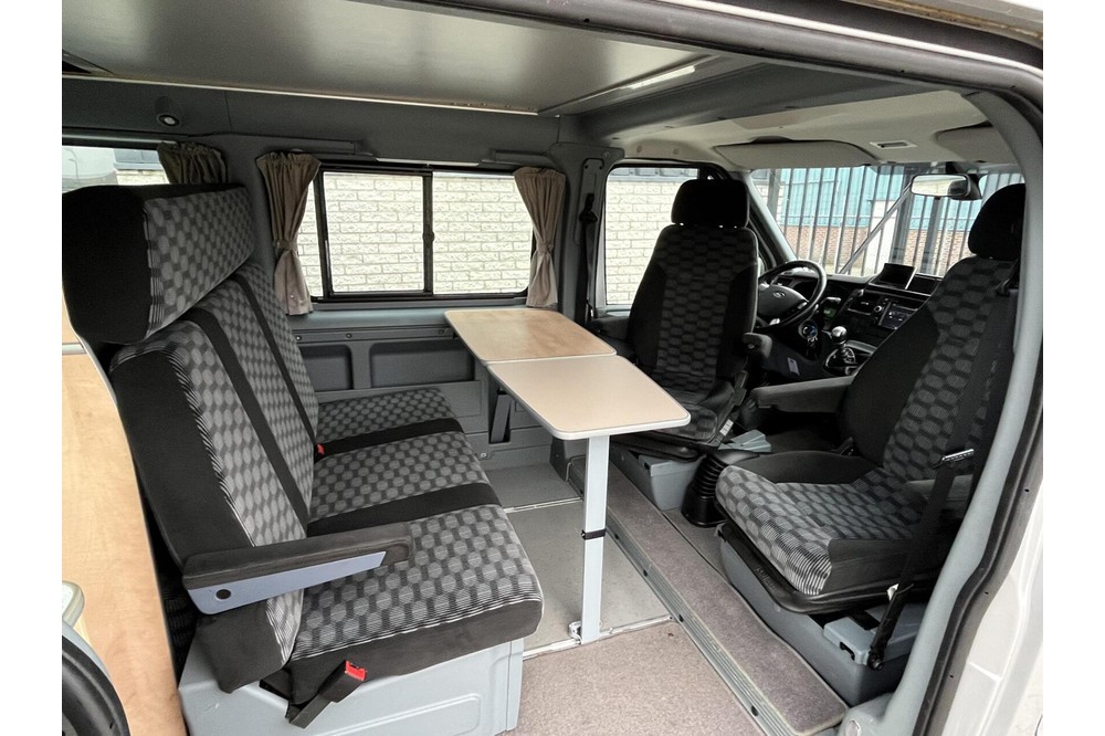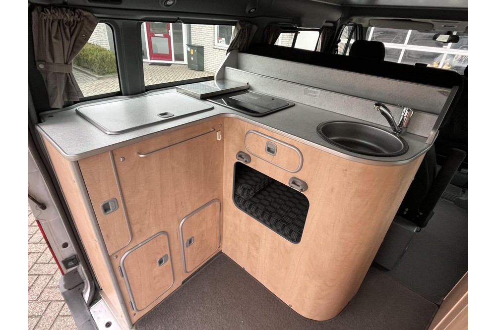 De Ford Transit Westfalia is voorzien van een keuken met een 2-pits gasstel, een koelvak en RSV spoelbak met kraan. De zithoek is voorzien van 5 zitplaatsen met verlengbare tafel en is om te bouwen tot een 2 persoons bed, tevens is het hefdak ook nog voorzien van een 2 persoons bed. Verder voorzien van verwarming, 230V aansluiting en veel opbergruimte.