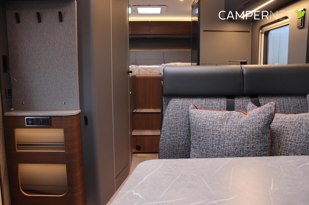 De nieuwe vrijgevigheidPerfect op elkaar afgestemde indelingen creëren je persoonlijke heiligdom. Geniet van een goede nachtrust in het comfortabele slaapgedeelte. Het geïntegreerde hefbed en de geavanceerde opbergoplossingen optimaliseren de ruimte. Het holistische designconcept met een nieuwe verlichtingsesthetiek en de mobiele werkplek maken productief en ontspannen werken mogelijk, zelfs onderweg.
