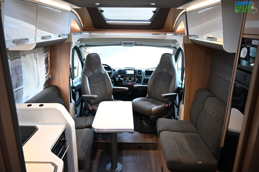 De Matrix 670 DC onderscheidt zich door een doordachte indeling die comfort en functionaliteit combineert. De camper beschikt over een comfortabel, centraal geplaatst queensbed achterin en een elektrisch bedienbaar hefbed boven de zithoek, wat resulteert in 4 volwaardige slaapplaatsen. De Camper is uitgerust met een ruime 'face-to-face' zithoek, die een gezellige en sociale ruimte creëert, met verstelbare stoelen en voldoende ruimte voor maaltijden of ontspanning. De camper heeft een volledig uitgeruste keuken en een badkamer met gescheiden douche- en toiletruimtes, wat bijdraagt aan het comfort tijdens langere reizen. Het model is gebouwd op een betrouwbaar chassis, de Fiat Ducato 2.3L. De constructie omvat doorgaans een polyester onderzijde van de vloer en volledige LED achterlichten.