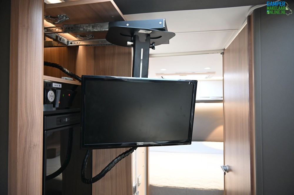 De Camper is o.a. uitgerust met luchtvering aan de achterzijde, een Cassetteluifel, fietsdrager, Zonnepaneel en schotel.