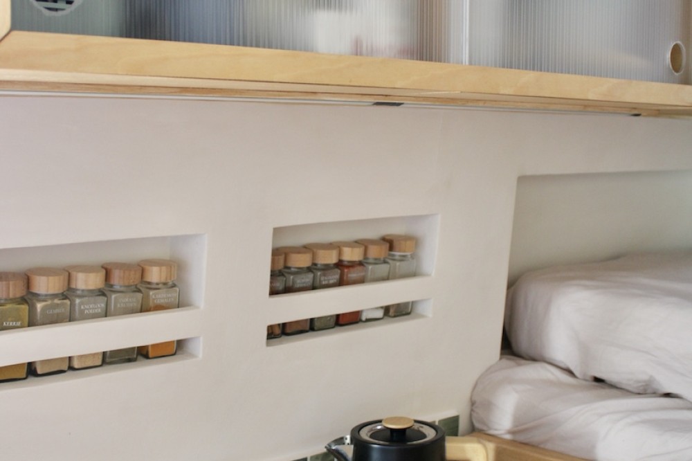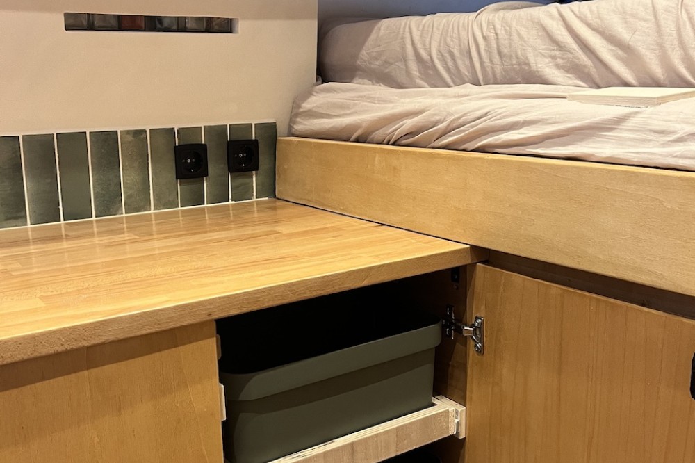 • Meerdere planken, bakken en lades in het woongedeelte