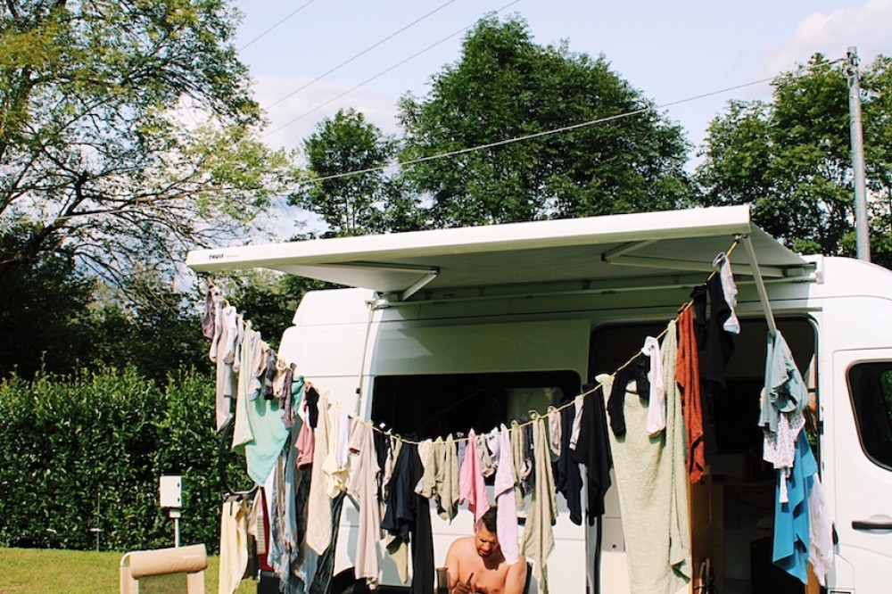 Cees de Camper is een zelfomgebouwde Renault Master uit 2019 en volledig klaar voor een off-grid avontuur. Met een zonnepaneel op het dak, laden tijdens het rijden, inductie koken, een buitendouche met warm water, verwarming en een composttoilet kun je gaan en staan waar je wilt.