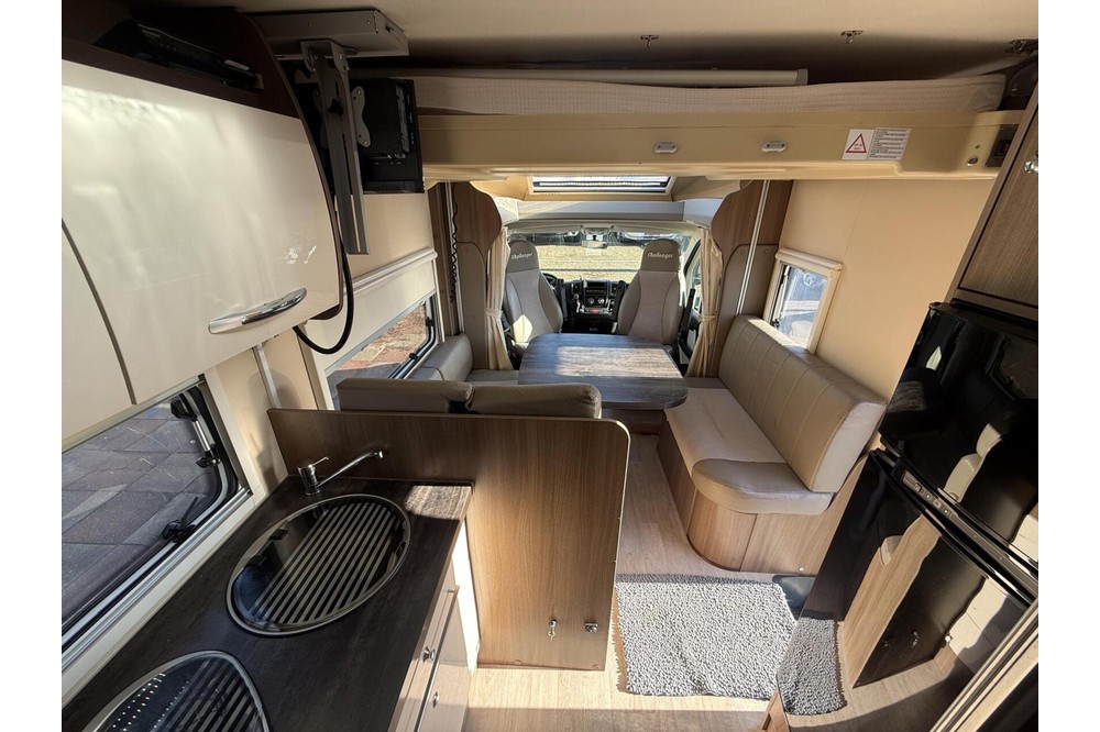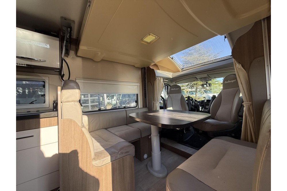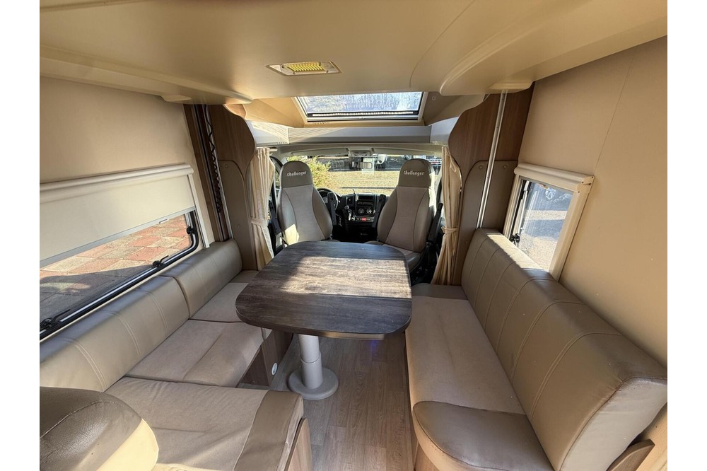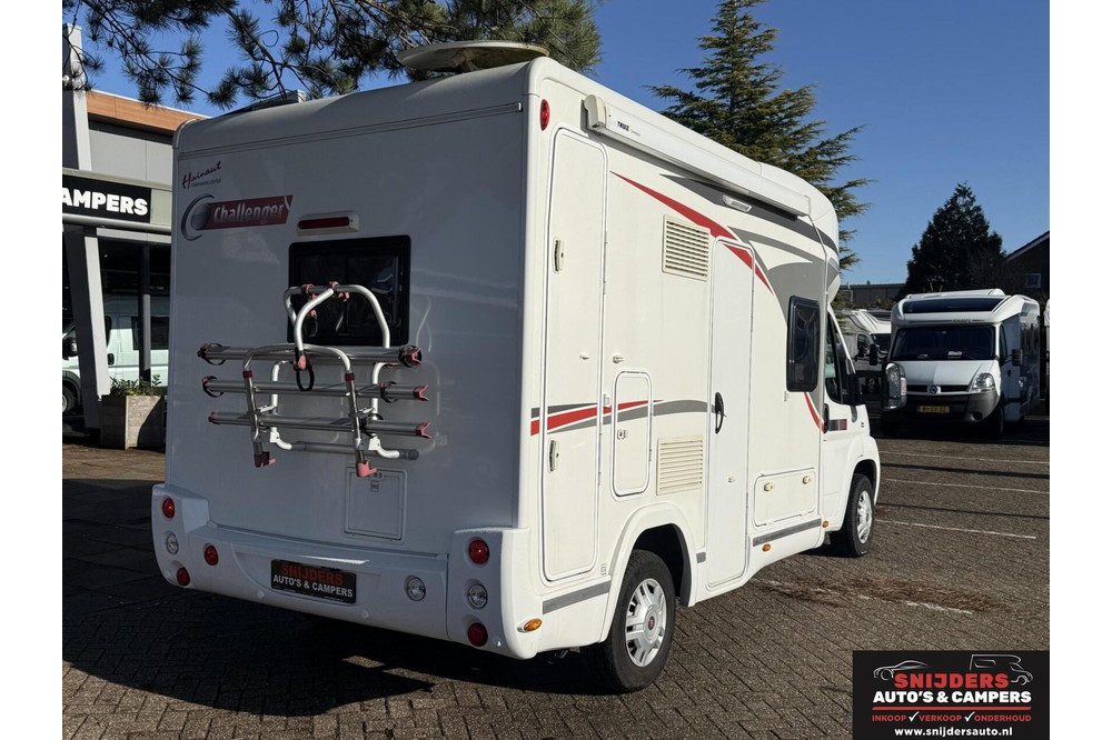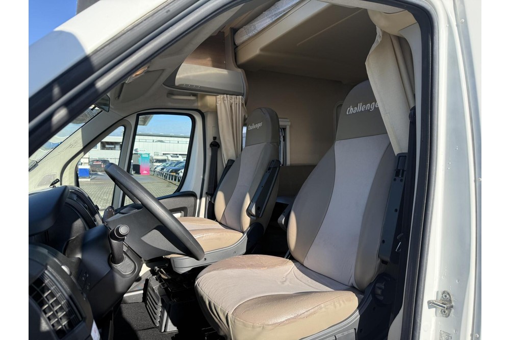 Een zeer bijzondere camper! Deze Challenger Birthday 190 uit 2014 met schone EURO-5 motor. De camper is slechts 599cm lang, maar enorm ruim van binnen door de slimme indeling. De camper is voorzien van ruime rondzit dmv draaistoelen, een midden keuken met XXL koelkast, en een toilet ruimte tegen de achterwand. Het bed is electrisch te laten zakken. Door dat de camper enkel een hefbed heeft is de woonruimte zeer ruimtelijk. Uiteraard is deze camper van alle gemakken voorzien, zoals o.a. motor airco, een panorama dakraam, een XXL koelkast, een luifel, een fietsendrager, , en nog veel meer!