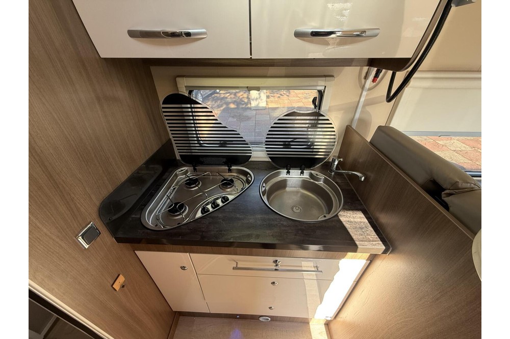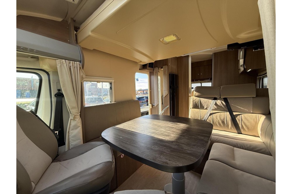 Deze ruime camper biedt comfortabel plaats aan 4 personen, met 2 bedden, zodat u kunt genieten van een ontspannen nachtrust tijdens uw reis.