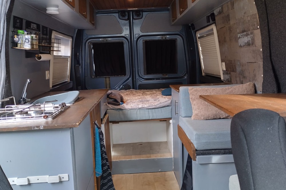 Het betreft een zelfbouw buscamper met een praktische indeling die voor ons altijd erg prettig heeft gewerkt tijdens onze reizen. We hebben er veel mooie trips mee gemaakt.