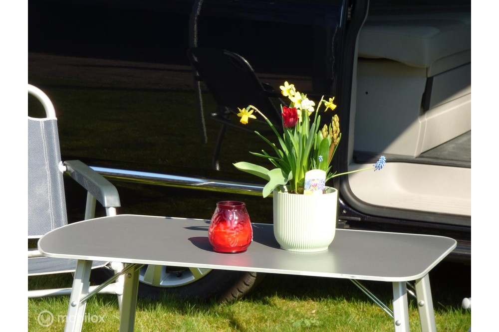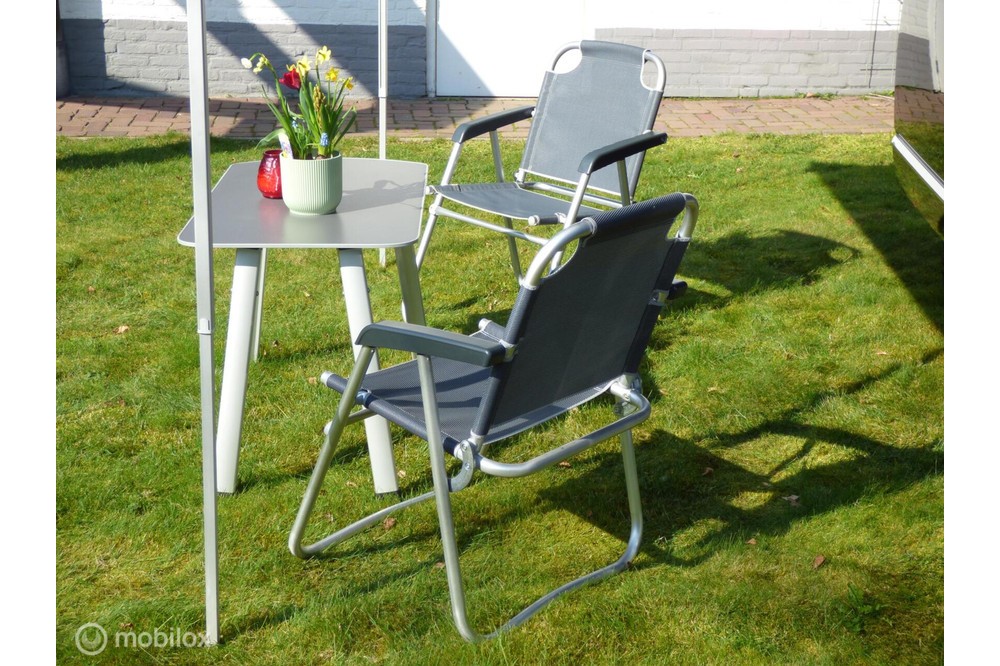 - Meest luxe kampeer inrichting met kampeer stoelen en tafel in deuren en kleppen opgeborgen en vele opbergmogelijkheden